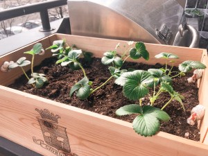 I planted some strawberries in old wine box that I used to use for shoe storage. Be resourceful with what you’ve got! And, let me tell you, they’ve already grown so much since I planted them two days ago!