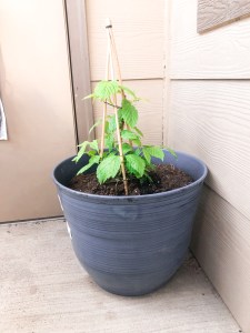 I planted a raspberry plant in a pot I’ve been itching to do something with for two years now. This is my first time growing raspberries!