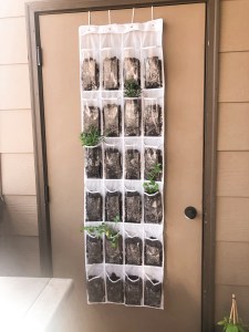 Last, but not least, I utilized a hanging shoe organizer to plant my herbs! I will definitely credit Pinterest for this one and, Lord, I hope it isn’t a fail. Here, I planted rosemary, lavender, cilantro, sweet mint, and dill and baby’s breath from seed.
